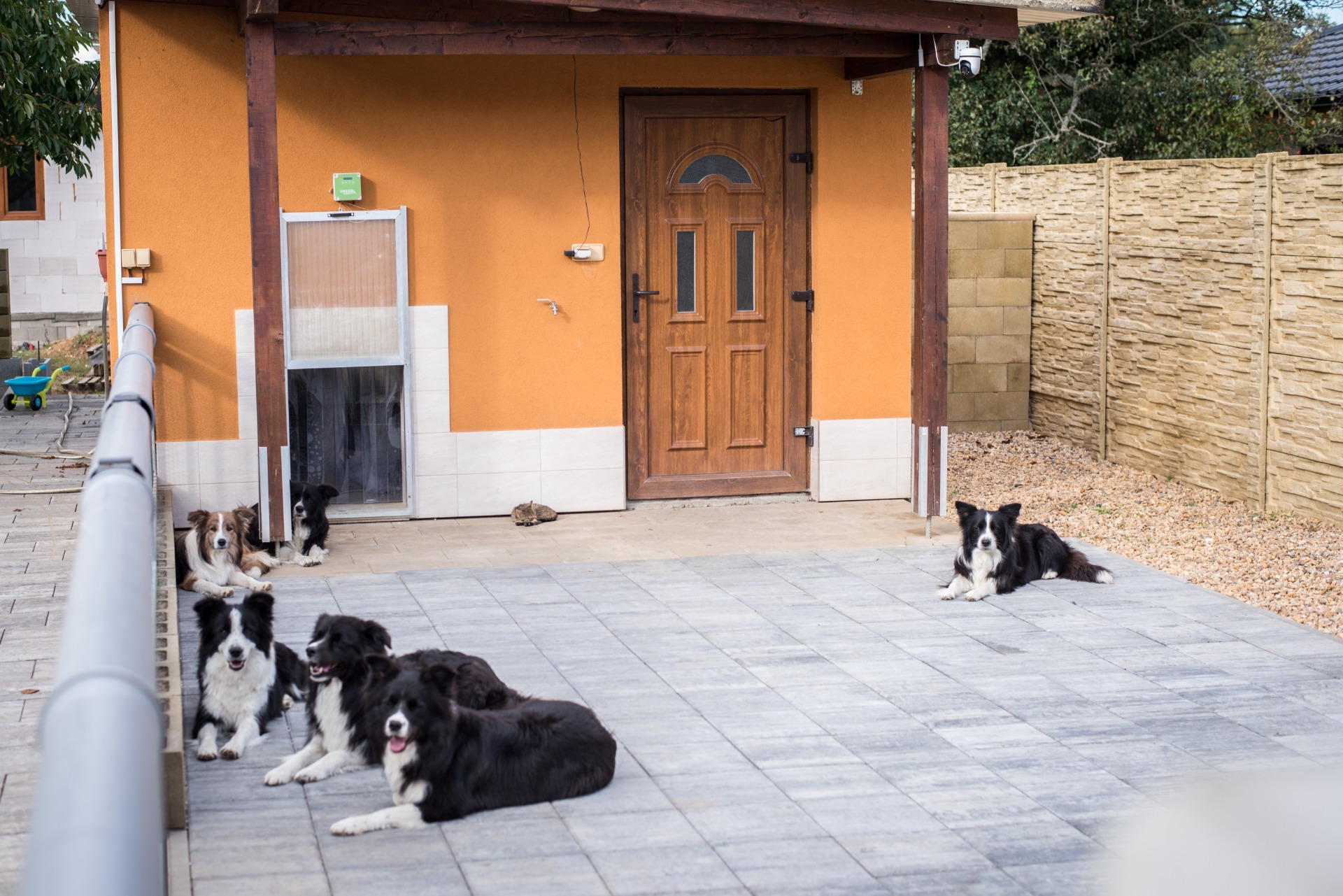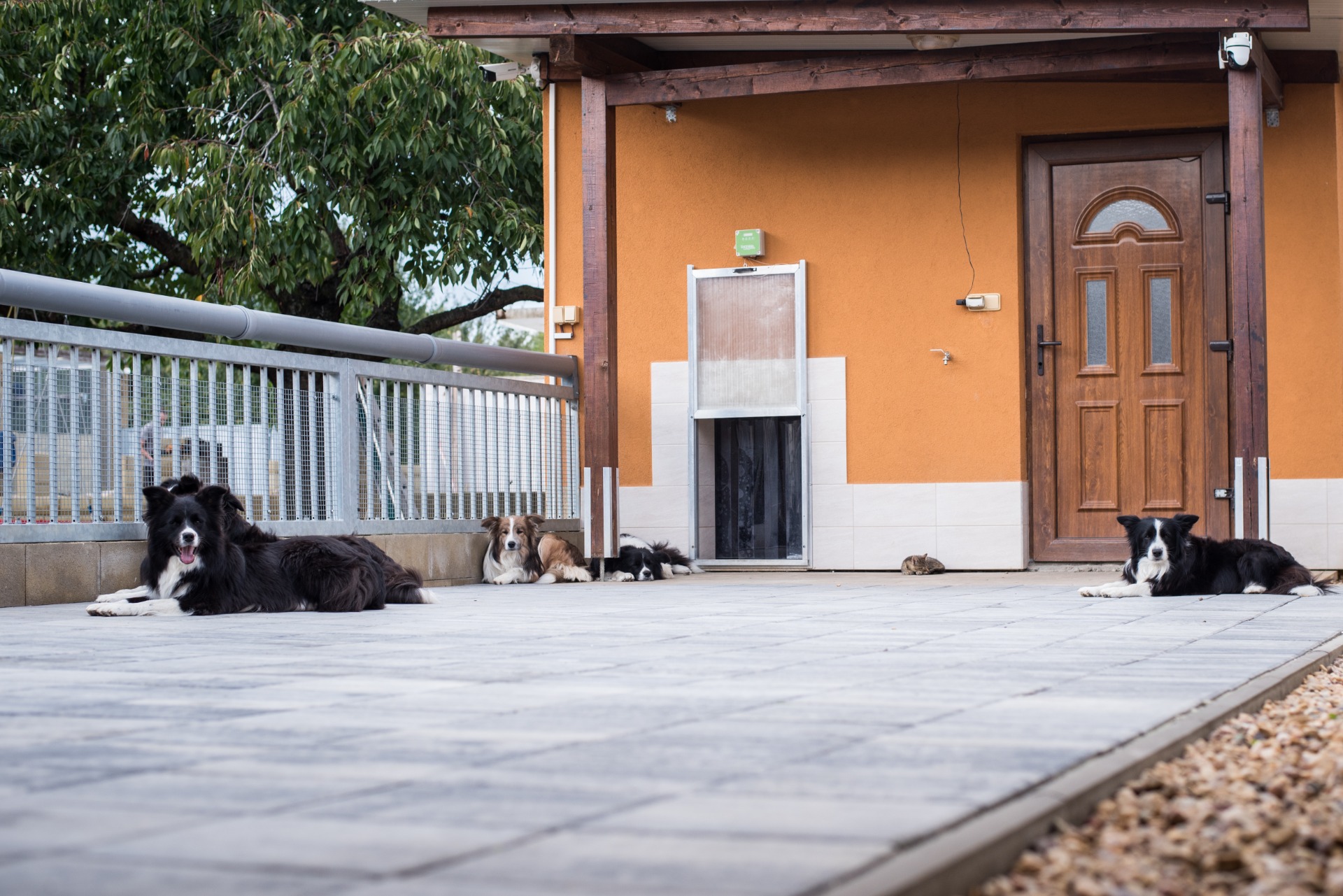 Pokojíček je opatřen automatickými dvířky, která se otevírají dle individuálních potřeb pejska - například ráno v nastavený čas, aby mohl hned po probuzení vyběhnout ven. Díky tomu je zajištěna maximálně osobní péče a respektování denního režimu každého pejska.